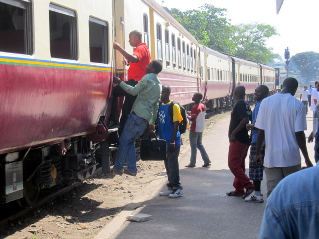 Wanafunzi wakipanda katika behewa lao maalumu tayari kwa safari.